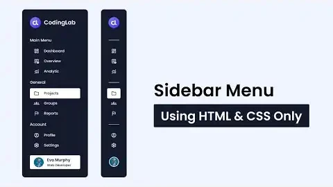 Create a Simple Sidebar Menu in HTML and CSS | Side Navigation Menu Bar